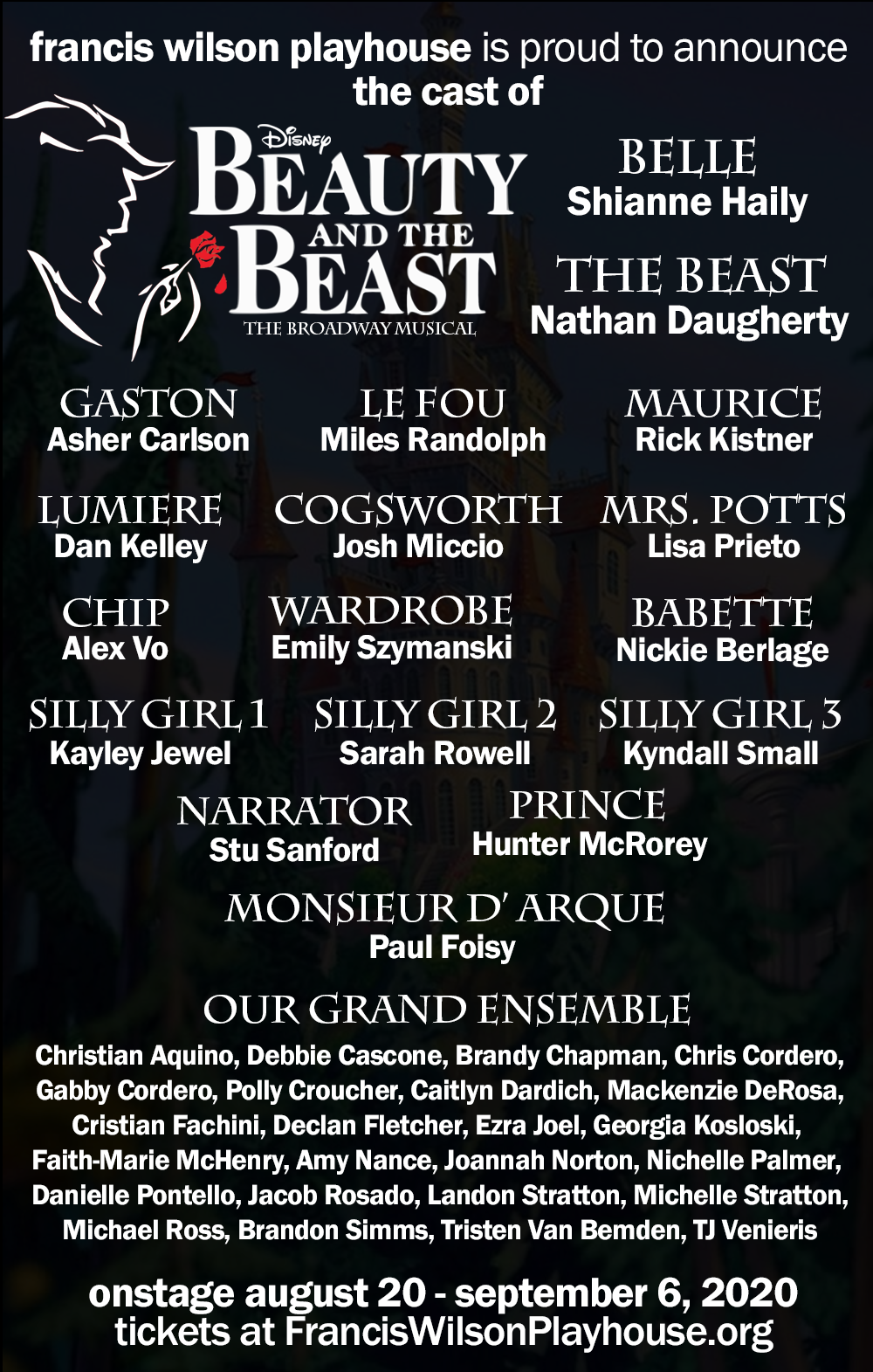 Based on the classic French fairy tale by Jeanne-Marie Leprince de Beaumont, the critically acclaimed Oscar nominated family film was transformed to an enchanting Broadway musical in 1991, running over a decade in NYC. We invite you to Be Our Guest and come follow the adventures of Belle, the Beast, Gaston and a lovable household full of magical characters. This singing & dancing musical extravaganza is one not be missed, for it truly is a “tale as old as time”.